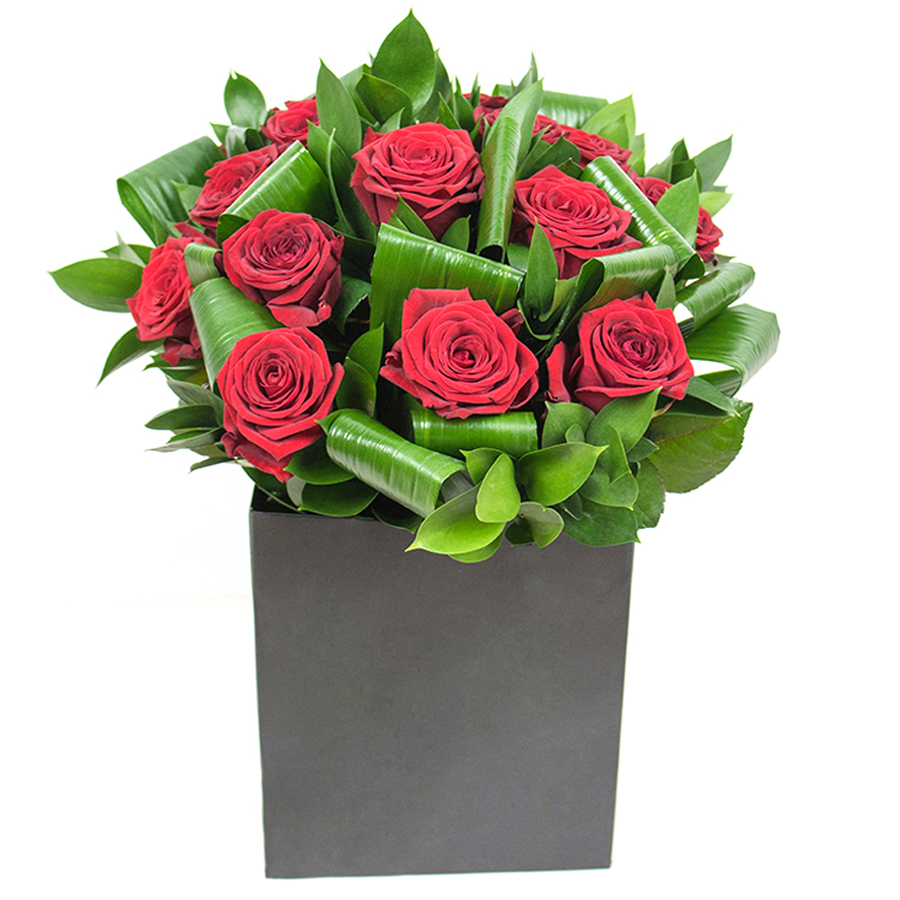 Our Luxurious Red Rose Ensemble combines the deep hues of red roses with the rich greenery of aspidistra leaves and the graceful touch of ruscus. This exquisite arrangement is designed to bring elegance and charm to any home or event.